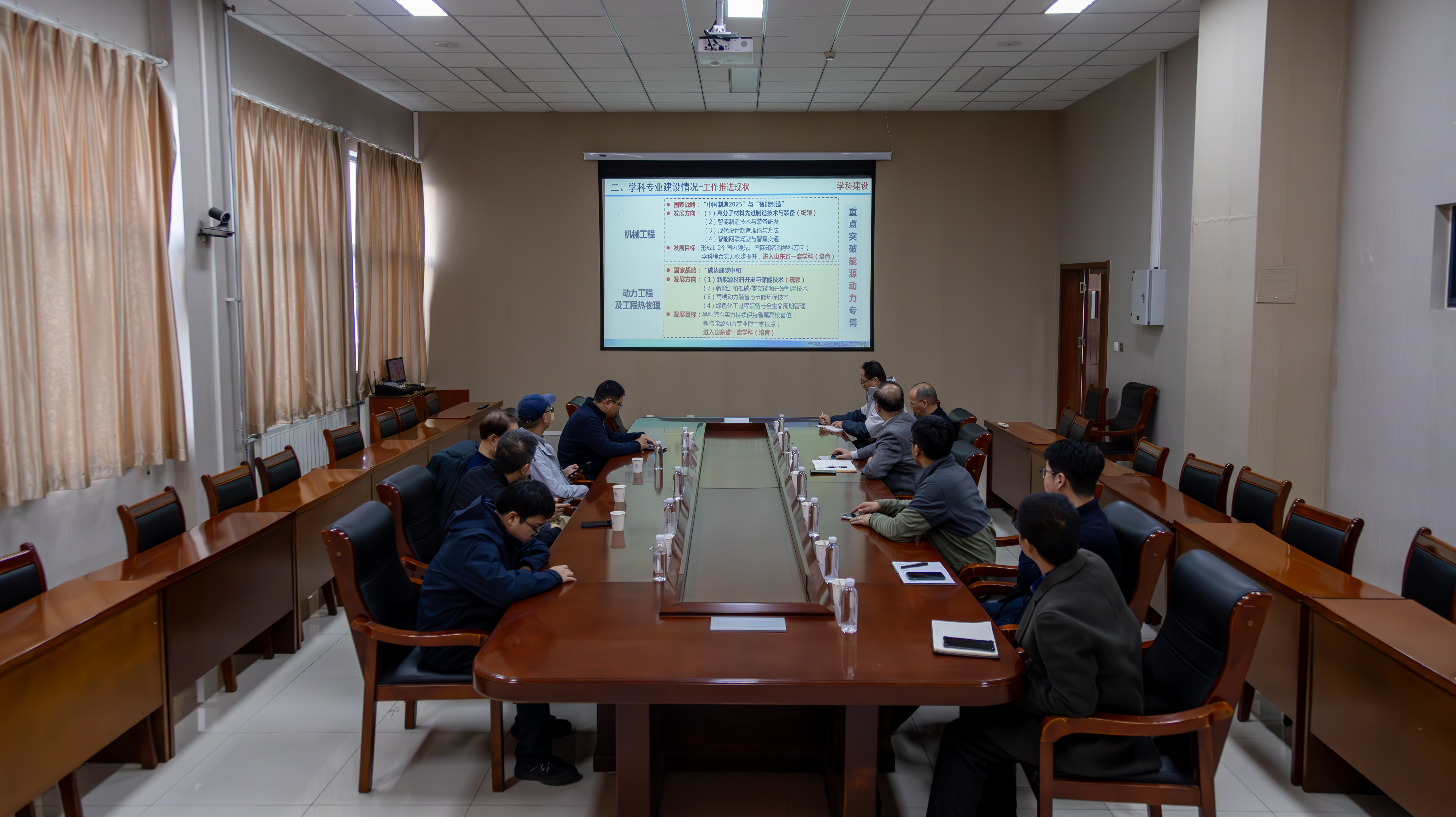 会上,学院党委书记任允晓首先介绍了我院机械工程、动力工程及工程热物理两个博士点专业的学科建设整体情况,包括学科发展定位、现有科研平台、师资队伍及人才培养成效等。随后,与会人员围绕两个博士点的核心研究领域切入,各位专家轮流就学科建设规划、科研团队建设、人才培养等方面深入交流并给出针对性建议,为两个学科后续高质量发展明确了路径。